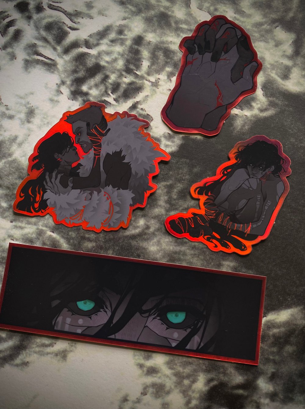 As the WANDERING SHADE continues to delve into the romantic and the violent, these stickers, designed by the incredible MISSMAJORED, will be sure to leave a mark (and scar)!